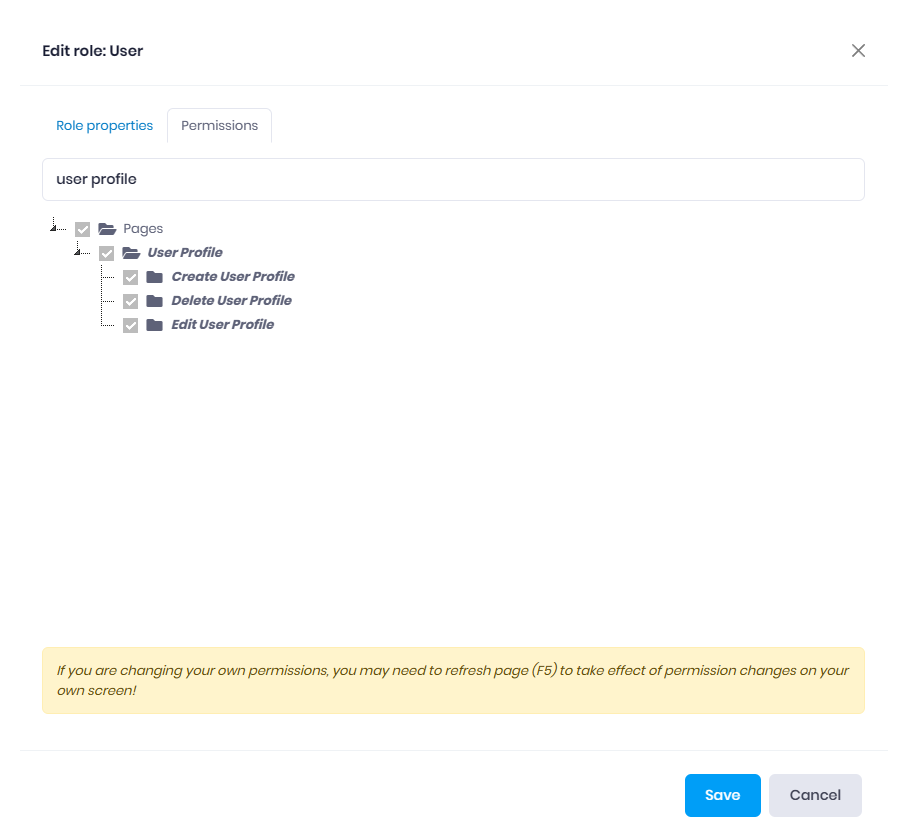 Updated the permissions table to allow a user to update the profile details without needing to access the User Permissions.